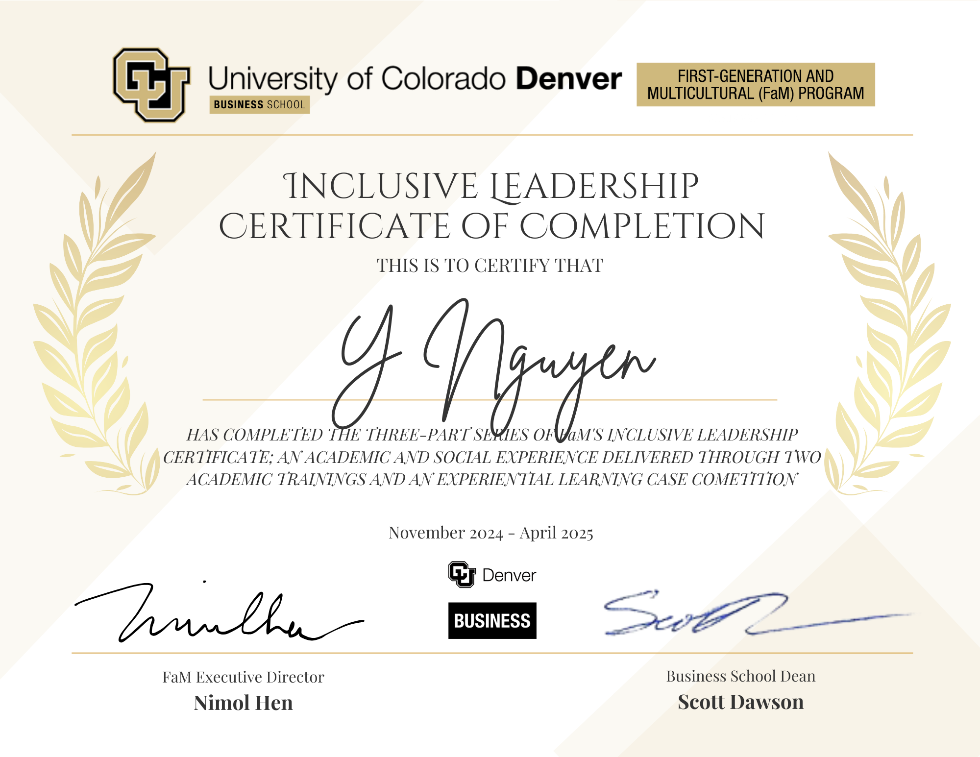 The First-Generation and Multicultural (FaM) Business Program at the University of Colorado Denver Business School is designed to support, empower, and accelerate the success of undergraduate students who are first-generation college students or come from diverse, multicultural backgrounds.